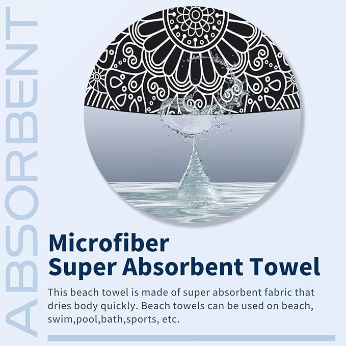 - Sand Free and Super Absorbent : Super soft, the beach towel instantly absorbs water when it touches the water.Whether you are on holiday at the beach or swimming pool ,it will bring you a comfortable feeling.Our beach towels are sand free and can be kept clean at any time