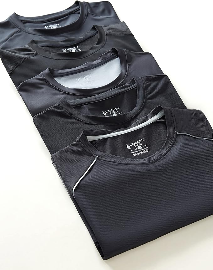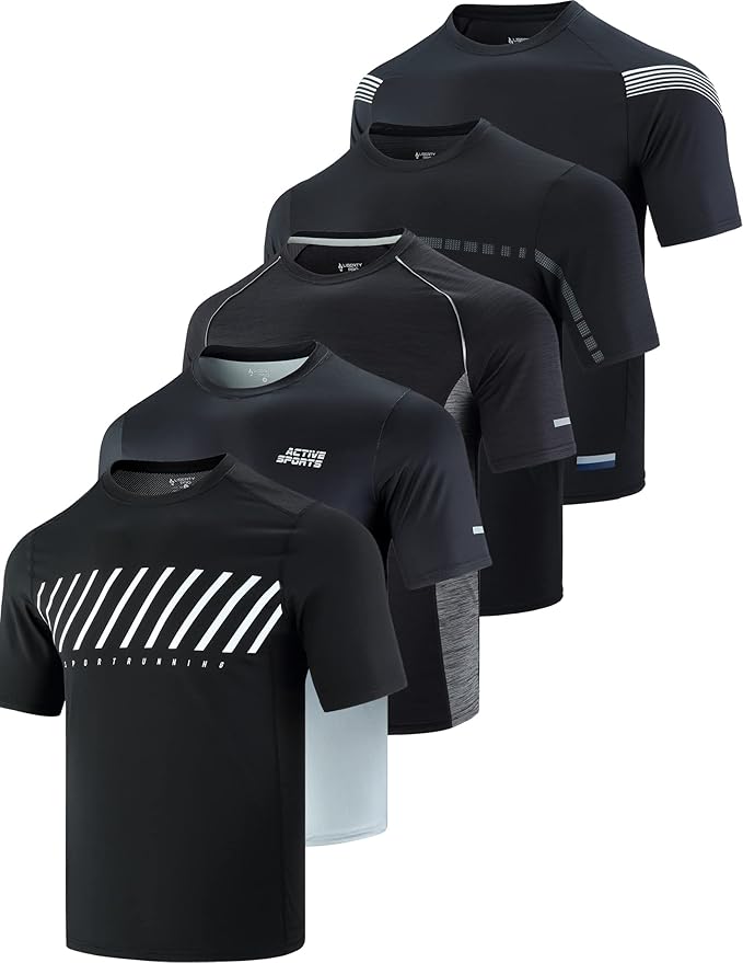 - BULK UP YOUR WARDROBE: Our 5 Pack Men's Active Quick Dry Crew Neck T Shirts are a must-have for any man's wardrobe. With a variety of designs and patterns in classic black, these tees are perfect for workouts or everyday wear.