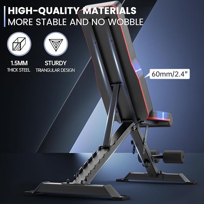 - 【FOLDED & SAVE SPACE】: With its user-friendly design, this foldable workout bench can be set up with ease and can easily be folded and kept aside when not in use. When you complete your workout, you can fold it and put it in a corner, saving 80% of space and creating accessibility in the room.