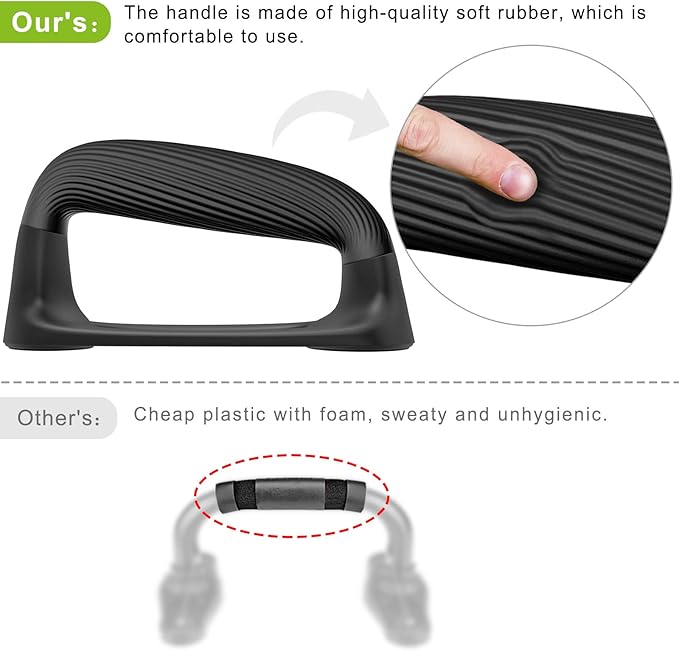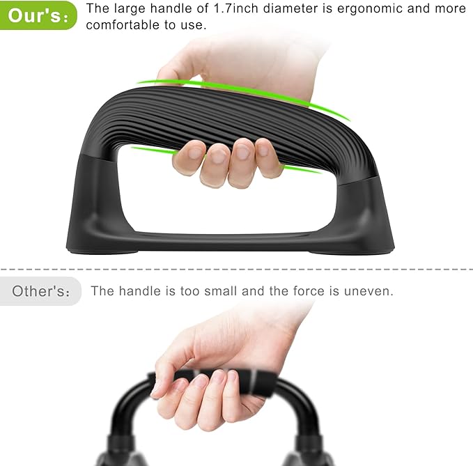 - 💎【Comfortable and Secure Grip】Our push up bars feature thickened soft plastic handles that provide a comfortable and ergonomic grip. The handle has a textured surface that prevents slipping and enhances stability. The handle is also angled to allow a natural range of motion and prevent injury