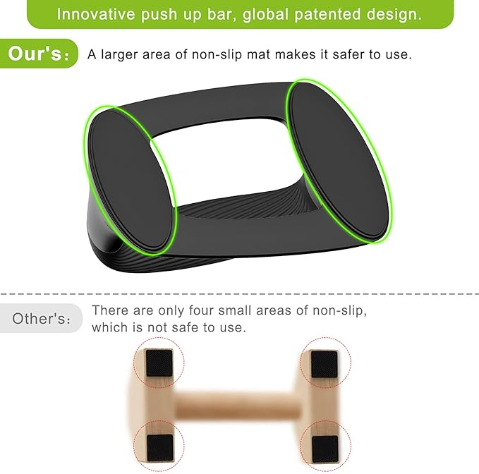 - 💯【Stable Non-Slip Base】The base of our push up bars is designed with anti-skid pads that increase friction and prevent sliding on any floor surface. You can focus on your form and technique without worrying about injuries or accidents