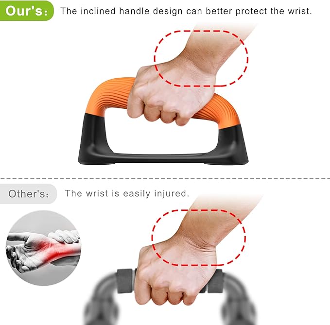- 🙌【Suitable for All Fitness Levels】Our push up bars are suitable for men and women of all fitness levels, whether you are a beginner or an expert. You can adjust the difficulty of your pushups by changing the angle or position of your body. You can also use our push up bars at home, gym, office, or outdoors