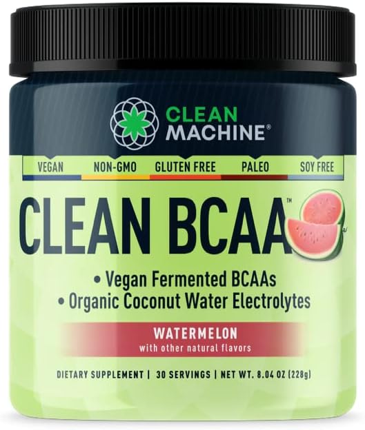 Clean BCAA - 2:1:1 Food Sourced BCAAs Powder & Coconut Water Electrolytes Recovery & Amino Energy Supplement - Award Winning Vegan Amino Acid Supplement - 30 Servings - Watermelon