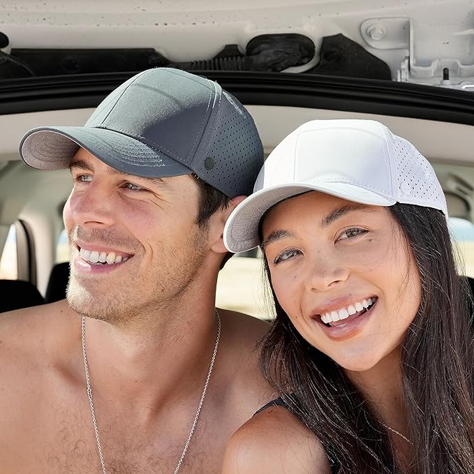 - HIGH PERFORMANCE: Our ultra performance hats for men are made with 100% polyester and include laser cut holes to ensure you stay cool. If it gets dirty, don't worry! Just hand wash with a little soap and warm water and watch the dirt melt away. Designed with a super soft & comfortable sweatband with front panel lining, this mens pool hat won't leave red marks on your head so you will never want to take it off!