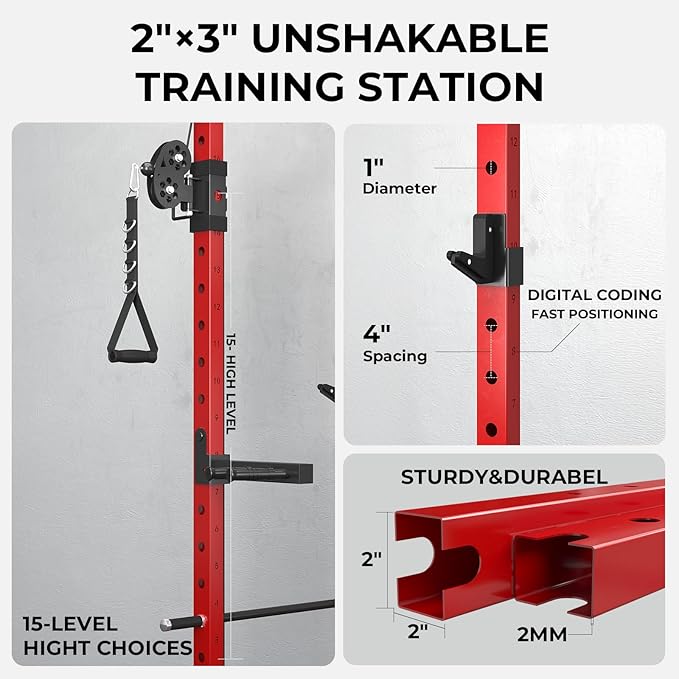 - 【Commercial-Grade Construction】Built with 2”x3“ 14-gauge steel (30% thicker than competitors), supporting 1,500lbs – ideal for intense training. Dimensions: 64.7"L x 63.1"W x 83.5"H. Includes simplified step-by-step instructions for tool-free assembly in <90 minutes