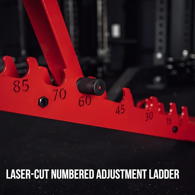 - Specifications - Bench Weight: 89.3lbs | Bench Height: 17.1” | Bench Width: 25.8” | Bench Length: 56.6” | Back Pad Angles: -12, 0, 15, 30, 45, 60, 70, 85 | Seat Pad Angles: 0, 5, 10, 15, 20 | Number of Leg Roller Positions: 6 | Back Pad Length: 36” | Back/Seat Pad Width: 11.8”/15” | Seat Pad Length: 15” | Leg Roller Length: 7.7” (each) | Pad Gap: 2.1” | Footprint: 9.85 | SQFT Tolerance: 3% | Weight Capacity: 1,000lbs | Material: 11-Gauge Steel