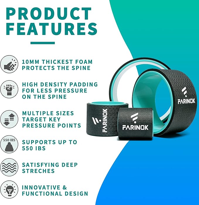 - Widen Padding: Extra wide padding improves your balance when you doing Yoga posture. This yoga wheel is perfect for more difficult stretches, helping your neck, spine, shoulders and making your yoga moves deeper. Your body will be stretched smoothly, and you'll be surprised when you finally gain flexibility and comfort.