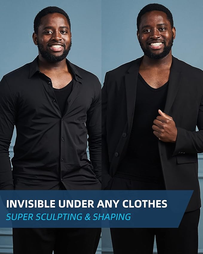 - INVISIBLE UNDER ANY CLOTHES: Due to the seamless and v neck design, your shapewear underwear can be worn secretly under any clothes, such as suits, formal dress shirts, workout shirts, t-shirts, polos and sweaters. Wear it anytime, anywhere, instantly look inches smaller, pounds thinner. This compression sportswear for men is best for zumba, yoga, gym, fitness, running, cycling etc. Wearing compression underwear , with healthy eating and scientific exercise, it will assist your weight loss.