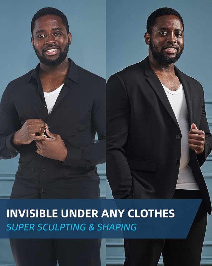 • INSTANT SHAPING RESULTS: KOCLES mens compression shirt is specifically designed to minimize gynecomastia, your mens body shaper instantly slims your chest, tummy, sides, and back. Our compression undershirts for men will give your body an instantly slimmer look, then elevate your self-esteem! This mens slimming body shaper is a tshirts shirts for men , a mens shapewear, an ultimate chest binder and a girdle for men, all in one!