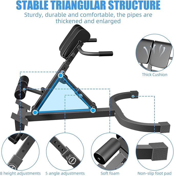 - 【MULTI-FUNCTIONAL BENCH】: The bench designed for multiple workouts, such as targets most major muscle groups, shape your abs, back, chest, glutes, hamstrings and core. Can perform hyperextension, side bend, sit-ups, reverse crunch and more.