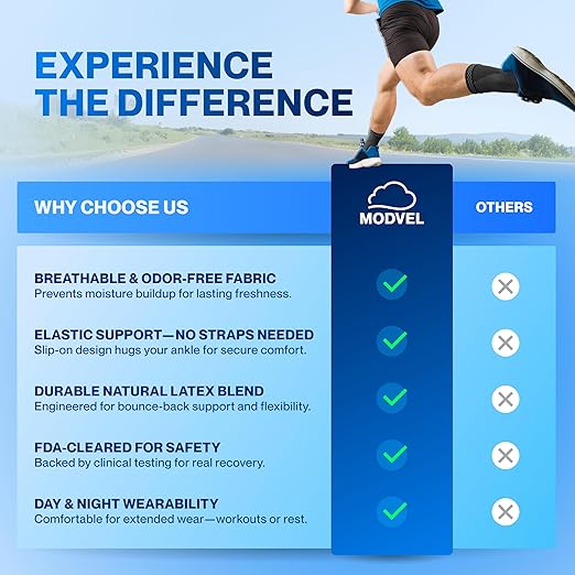 Modvel Foot & Ankle Brace Socks for Sprained Ankle Compression Sleeve - Plantar Fasciitis Relief Brace, Foot Support for pain Women & Men - Tendonitis & Arthritis Feet Sleeve, Stabilizing Ankles Wrap