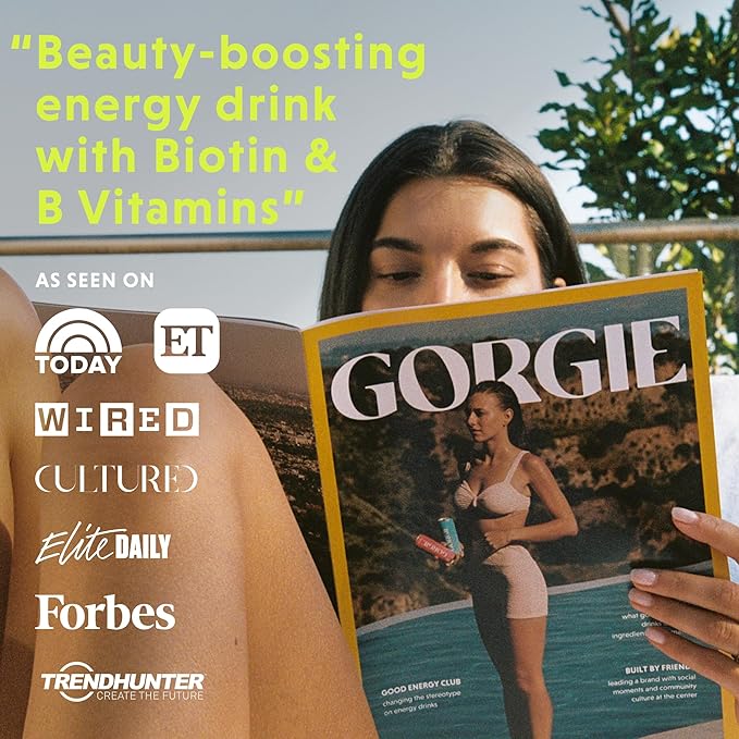 - WHERE ENERGY MEETS WELLNESS: Take on your morning without the crash of sugary energy drinks. GORGIE contains simple, clean ingredients and 150mg of green tea caffeine — a healthy alternative to coffee and mass market energy drinks. Did we mention 30mcg of biotin for hair, skin & nails with 100% of your daily value of Vitamins B6 & B12?!