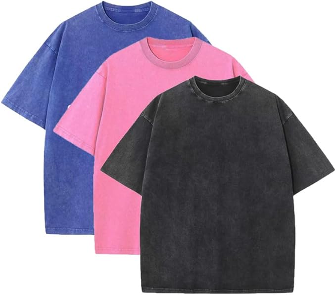 3 Pcs Men's Oversized Heavy Cotton Summer T-Shirts Vintage Tee Loose Fit Short Sleeve Casual Tshirts for Men Women