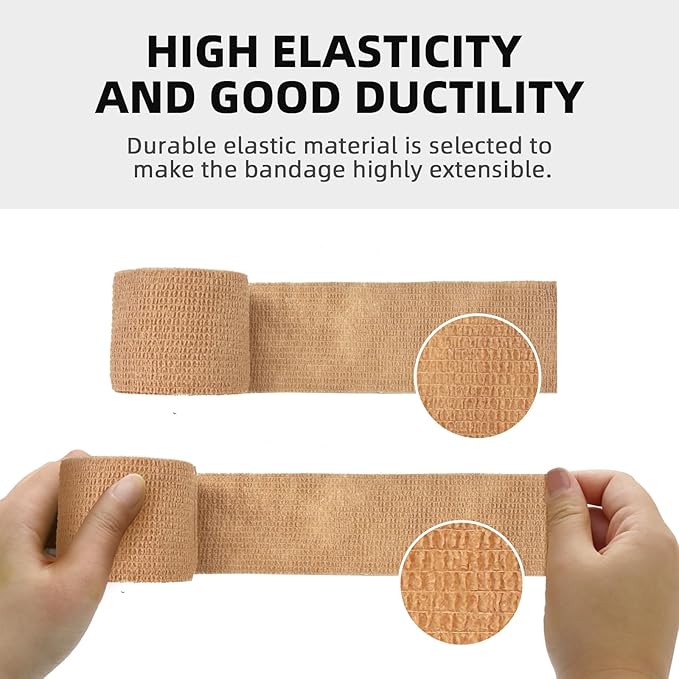 - What You Get - 24 rolls of self-adhesive beige bandages, each roll is 1" x 5 yards / 2.5 cm x 4.5 meters, packed individually. The 24 rolls pack can meet your daily needs, and the price of a single roll is lower and more economical.