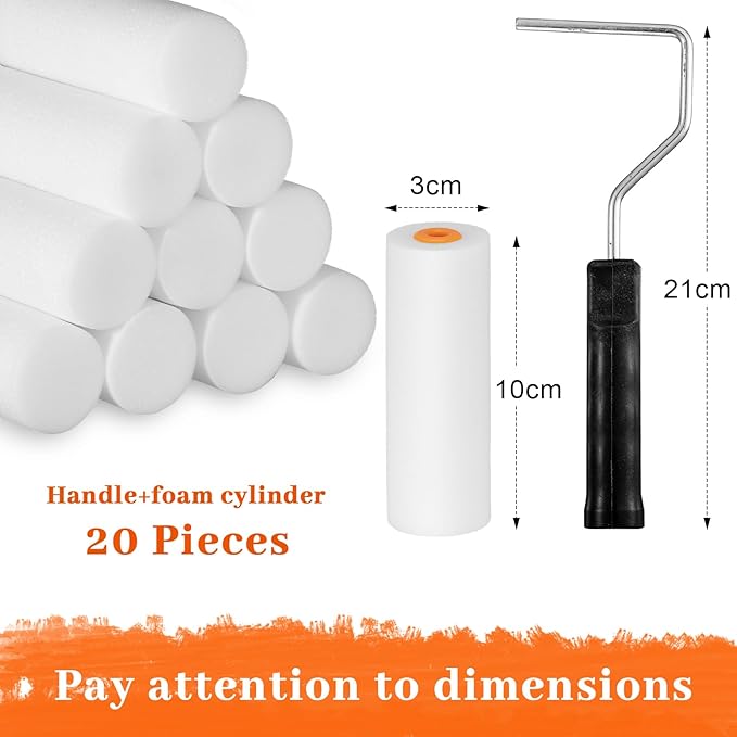 - Sufficient Quantity and Suitable Size: with 20 foam paint rollers included in the package, you'll have enough to complete your painting project with ease; Each roller is about 4 inches in size, which can meet your daily life needs and replacements