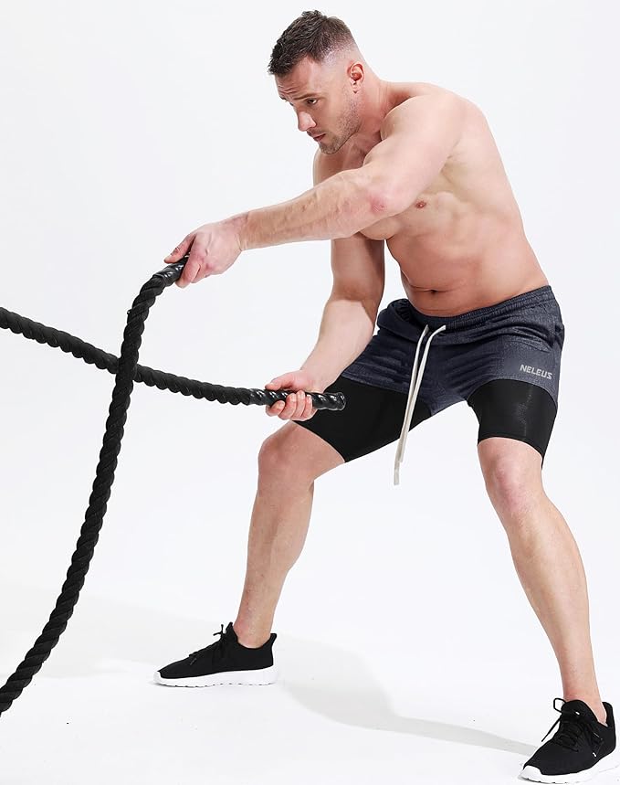 NELEUS Men's 2 in 1 Running Shorts with Liner,Dry Fit Workout Shorts with Pockets