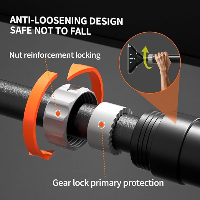 - 💪 【Firmly Locked】Upgraded double gear lock design, locking and anti-rotation design to prevent the lever from loosening and rotating. The thickened stainless steel tube prevents the lever from turning during use, ensuring your safety. Max Load Up To 440LB.