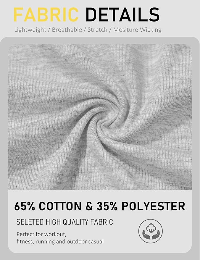 - Soft, Lightweight, Breathable, Stretchy.(Solid color is pure cotton while heather color is 65% cotton & 35 polyester)