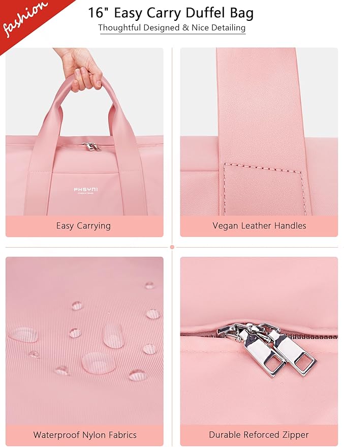 - 【Cute Small Gym Bag,Pu Wrist Strap】- Versatile Women Workout Bag,Arried as a Shoulder Bag Or Handheld Purse,1. Trim - Comfortable Vegan Leather Carry Handles, Classic Texture Exudes Sophistication. 2. Durability Nylon Fabric, Reinforced Stitching on Stress Points to Ensure Long-Term Use. 3. Foam-Lined Bottom and Side Panels ( 3 Layer Material) Keeps The Structure of The Bag. 4. Adjustable Shoulder Strap, Ideal as Your Short Trip Essential, or Daily Commute Partner