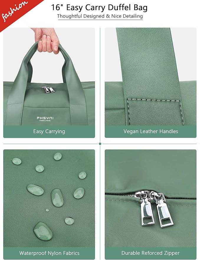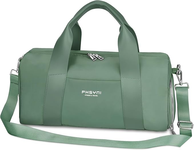 Compact Sports Gym Bag for Women, Cute Mini Duffle Bag with Wet Pocket & Shoes Compartment, Personal Item Travel Workout Bag, 16"-Small, Green