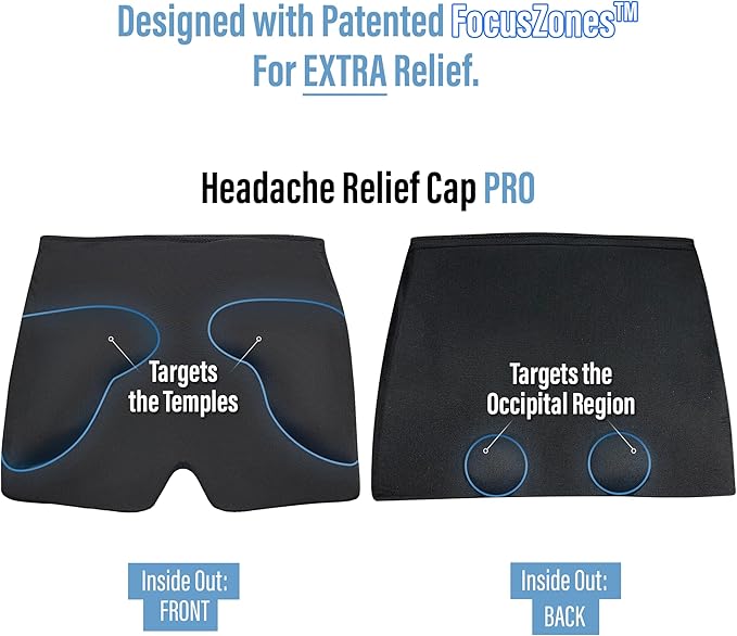 TheraICE Migraine Relief Cap PRO, Headache Relief Cap, Ice Face Mask, Cold Compress Head Wrap for Tension Headache Relief, Stress & Hangover, FocusZone Technology Provides Extra Cooling & Pressure