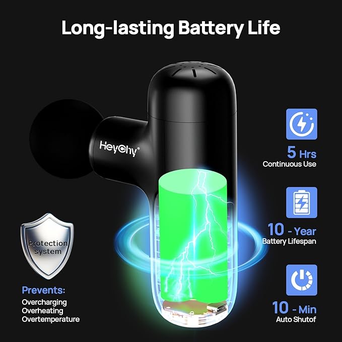 - Compact and Portable: This small massager weighs only 0.56 pounds and measures approximately 4.8 × 2.8 × 1.5 inches, making it easy to fit in your pocket, gym bag, or luggage. Its lightweight, ergonomic design, along with its high portability without compromising power, makes it ideal for athletes, travelers, and busy professionals. You can relax anywhere and at any time with HEYCHY.