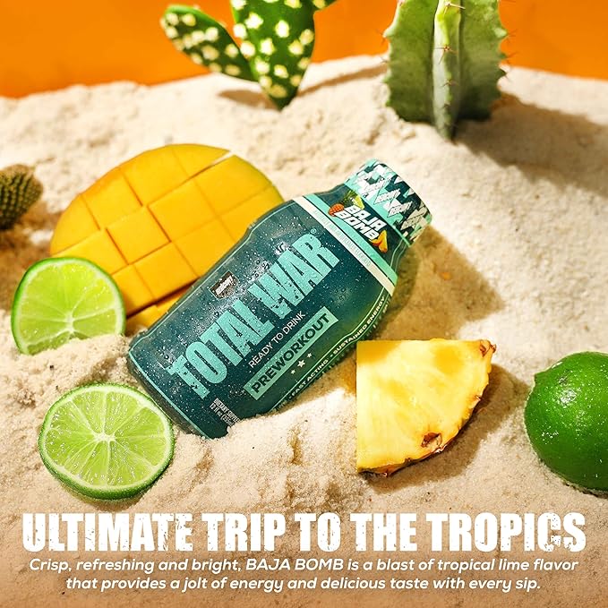 REDCON1 Total War Ready to Drink Preworkout, Baja Bomb - 350mg of Fast Acting RTD Caffeine - Beta Alanine + Citrulline Malate for Increased Pump (12 Servings)