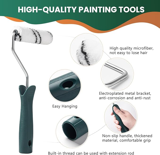 - WIDE APPLICATION: The paint roller 4 inch kit is suitable for various surfaces such as walls, ceilings, furniture, and more, our paint roller kit is perfect for both professional painters and DIY enthusiasts, delivering ideal painting results every time,it's also great for painting supplies.