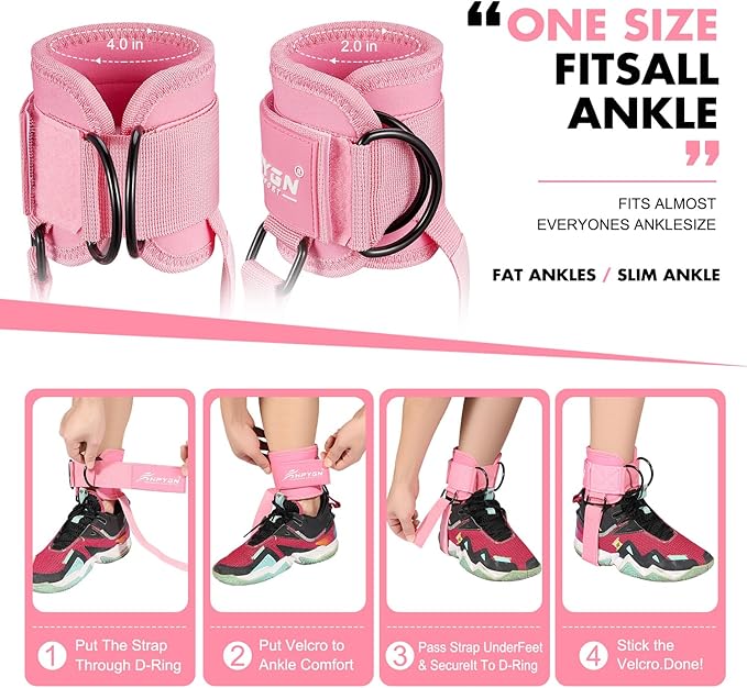 - 【ADDED AN EXTRA ADJUSTABLE STRAP】In order to solve the problem of the cable ankle strap sliding, our ankle cuff not only added an extra adjustable strap for secure your ankles, but also reinforce the strap part between bands and carabiner, more safe and durable. When you do kickback, it can protect your ankles not to slip easily and let your back kick more standard, won't strain the muscle, precise control of your inner and outer leg exercise, quickly get the body and physique of your dreams.