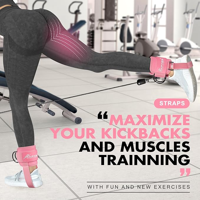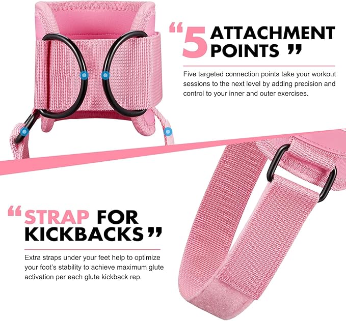 - 【WORK THAT BOOTY ANYWHERE YOU WANT】Wherever you exercise, cable kickback ankle straps are an essential addition to your workout. Easy to use in the gym or at home - whether you’re on the cable machine, doing a leg workout, or using other exercise equipment. Keep leg pulley ankle straps in your gym bag so you’re always ready to give your booty a fitness boost. Lightweight and easy to carry, they clip on and off in just a few seconds.
