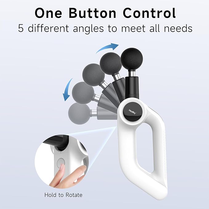 - Durable & User-Friendly: This Hypervolt massage gun is crafted with premium materials and a powerful motor for durability. Its unique parallelogram-shaped body allows for versatile gripping, allowing for flexible massage of back muscles. Adjustable massager gun arms provide superior control and comfort even for hard-to-reach areas.