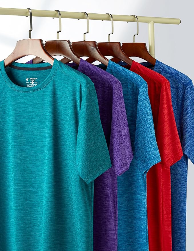 5 Pack Men’s Active Quick Dry Crew Neck T Shirts | Athletic Running Gym Workout Short Sleeve Tee Tops Bulk