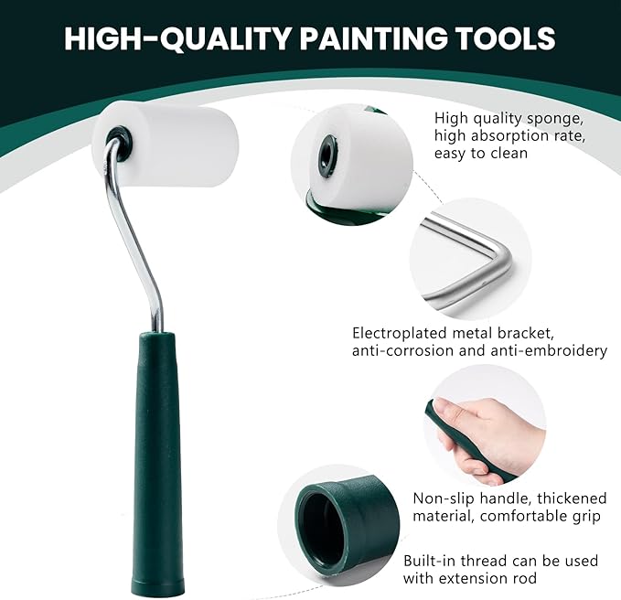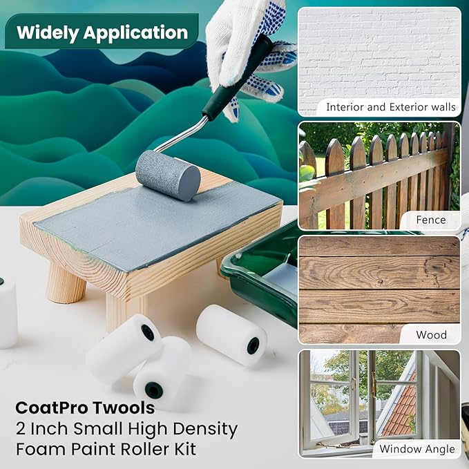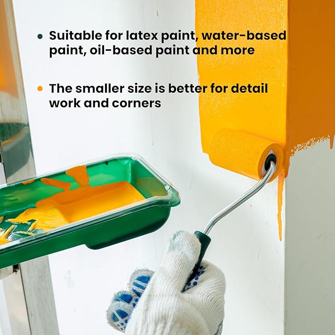 - High Density Foam: Small foam paint roller is durable with water and oil based paints, the high-density foam roller covers provide excellent paint absorption and smooth application, ensuring a flawless and even coat of paint every time.