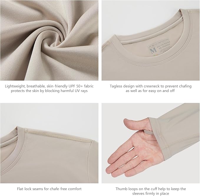 Men’s UPF 50+ Long Sleeve Performance T-Shirts Permanent UV Protective Quick Dry for Everyday Hiking Fishing Beach