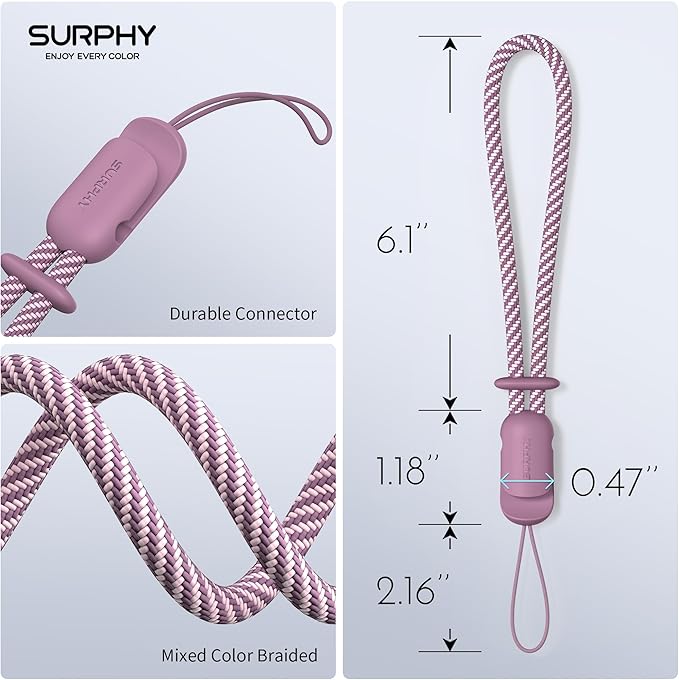 - Anti-fall Phone Lanyard : Lanyards is equipped with a sliding clasp, slide the clasp to adjust the lanyard to the right elasticity for your wrist, keeping the lanyard securely locked to your wrist, eliminate the risk of your cell phone falling out of your hand