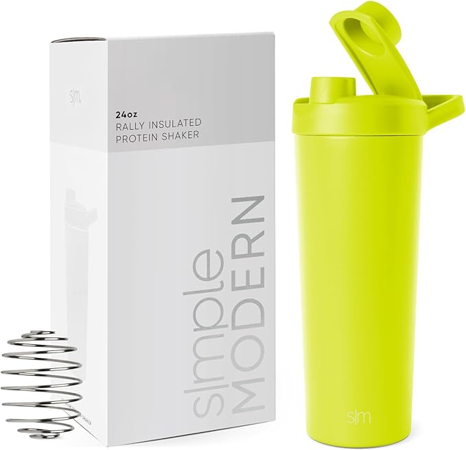 Simple Modern Stainless Steel Shaker Bottle with Ball 24oz | Metal Insulated Cup for Protein Mixes, Shakes and Pre Workout | Rally Collection | Chartreuse