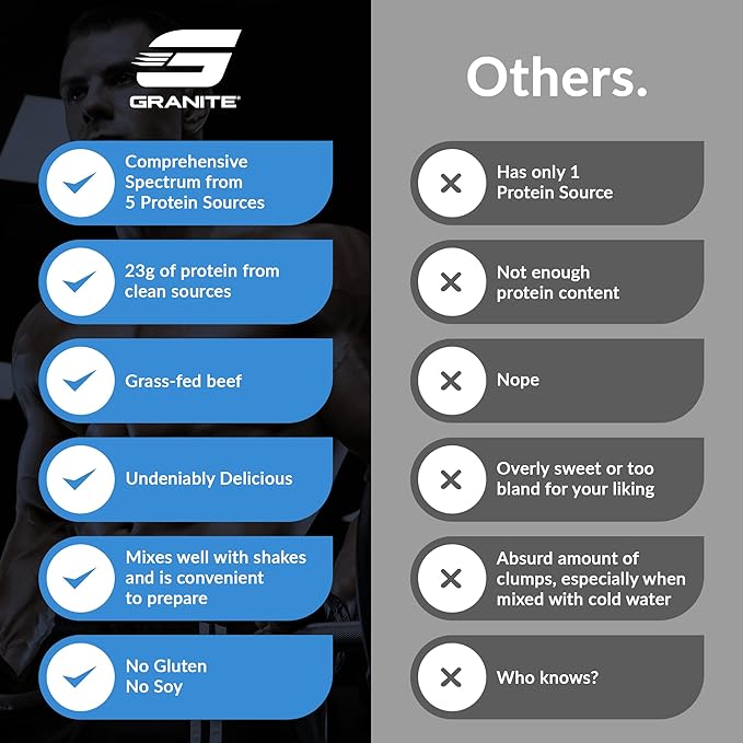 Granite Nutrition Protein Powder - Premium 5-Source Blend (Whey, Casein, Egg, Grass-Fed Beef) for Lean Muscle and Recovery - Blueberry Muffin Flavor, 30 Servings