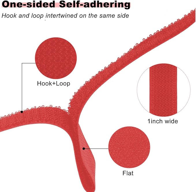 1"x16ft Hook and Loop Straps with 25 Metal Buckles, Adjustable Fastening Cable Straps, Cut-to-Length Cinch Strap, Reusable Nylon Securing Cord Ties for Organizer or Storage, 1 inch Wide,Red