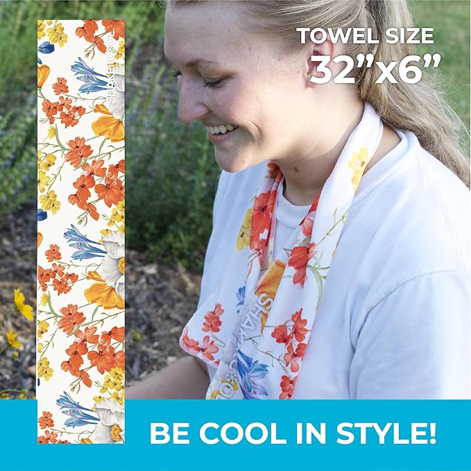SHAKEitCOOL Original Cooling Towel โ Be Cool in Style - Heat Relief, Soft, Lightweight, Sun Protection, Easy Clean - Perfect for Biking, Running, Yoga, Gym, Gardening - Flower