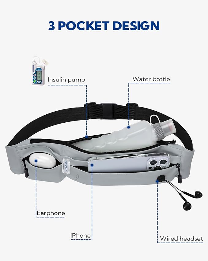 WATERFLY Running Belt Fanny Pack: Runner Marathon Jogging Waist Pack Sport Workout Exercise Fitness Phone Holder Belt for Men Women Jogger Slim Waistband Black