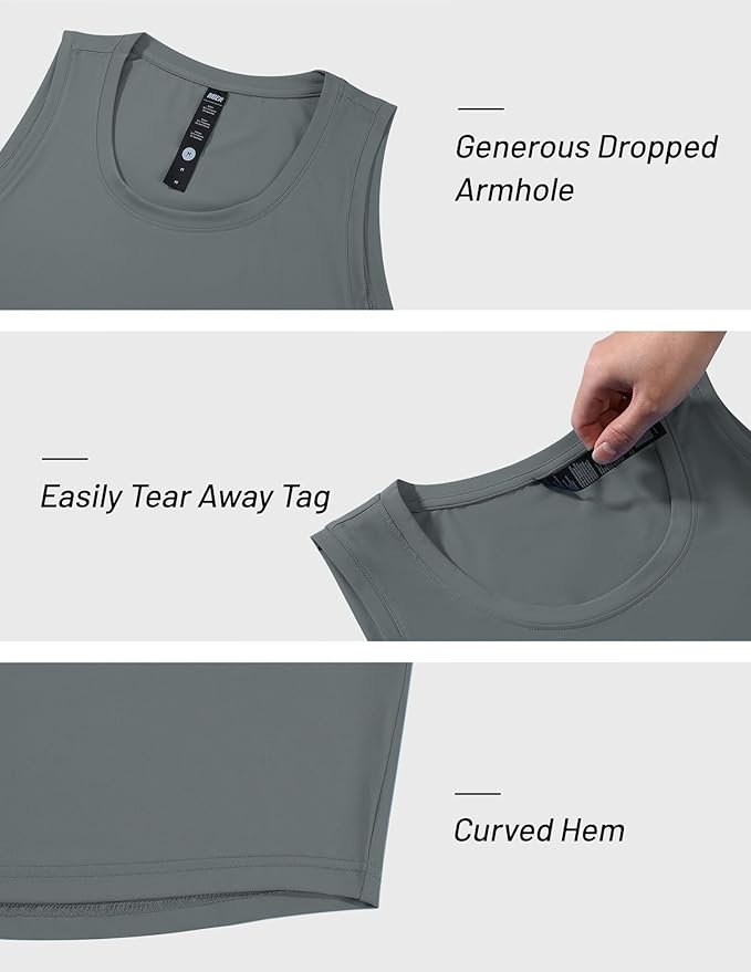 - Sleeveless Design: Engineered with optimal ventilation and freedom of movement, the sleeveless tank tops boast flexible armholes and a breathable construction, making you remain cool and comfortable throughout your workouts