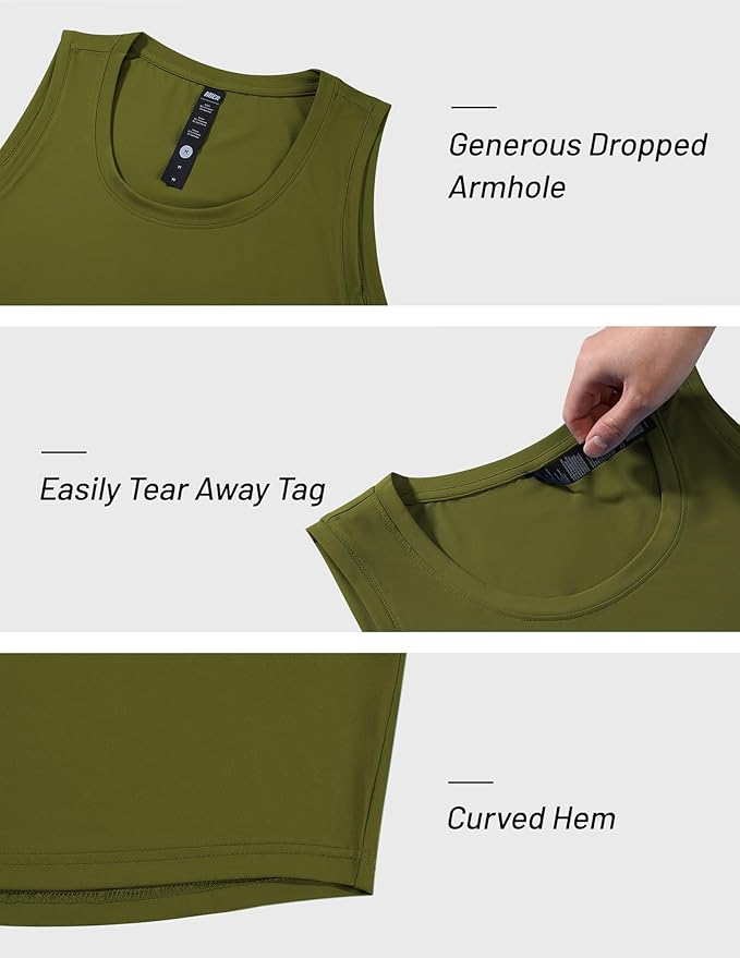 • Sleeveless Design: Engineered with optimal ventilation and freedom of movement, the sleeveless tank tops boast flexible armholes and a breathable construction, making you remain cool and comfortable throughout your workouts