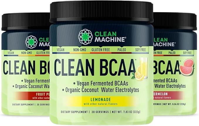 Clean BCAA - 2:1:1 Food Sourced BCAAs Powder & Coconut Water Electrolytes Recovery & Amino Energy Supplement - Award Winning Vegan Amino Acid Supplement - 90 Servings (3 Pack, Variety)