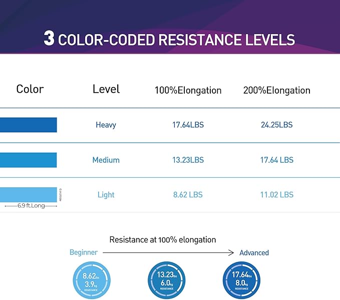 - 【Fun & Easy To Use】 The Bands are Perfect for Resistance Training and Rehabilitation, Which Provides Both Positive and Negative Force. You Can Take a Couple Wraps Around Your Hands for More Tension and a Secure Grip. or Just Tie a Knot, For Use as a Loop Band, and also You Can Double Them Up for Even More Resistance. The Bands are Vibrantly Color-Coded, Once You are Ready for a More Challenging workout, You can Move Up to The Next Color.