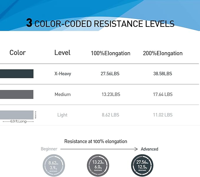 - 【Fun & Easy To Use】 The Bands are Perfect for Resistance Training and Rehabilitation, Which Provides Both Positive and Negative Force. You Can Take a Couple Wraps Around Your Hands for More Tension and a Secure Grip. or Just Tie a Knot, For Use as a Loop Band, and also You Can Double Them Up for Even More Resistance. The Bands are Vibrantly Color-Coded, Once You are Ready for a More Challenging workout, You can Move Up to The Next Color.