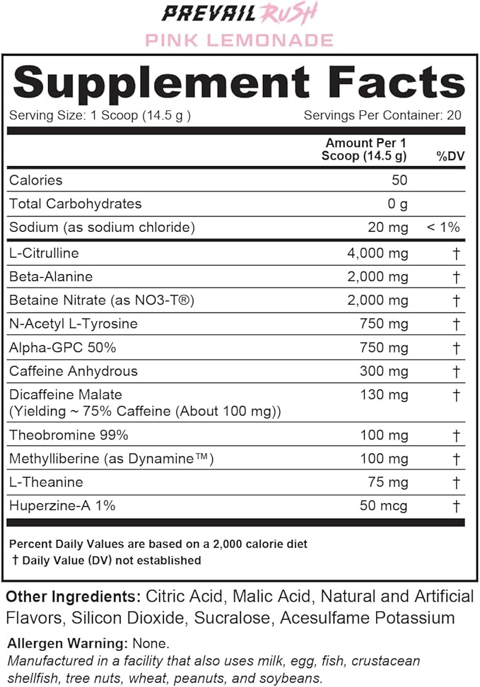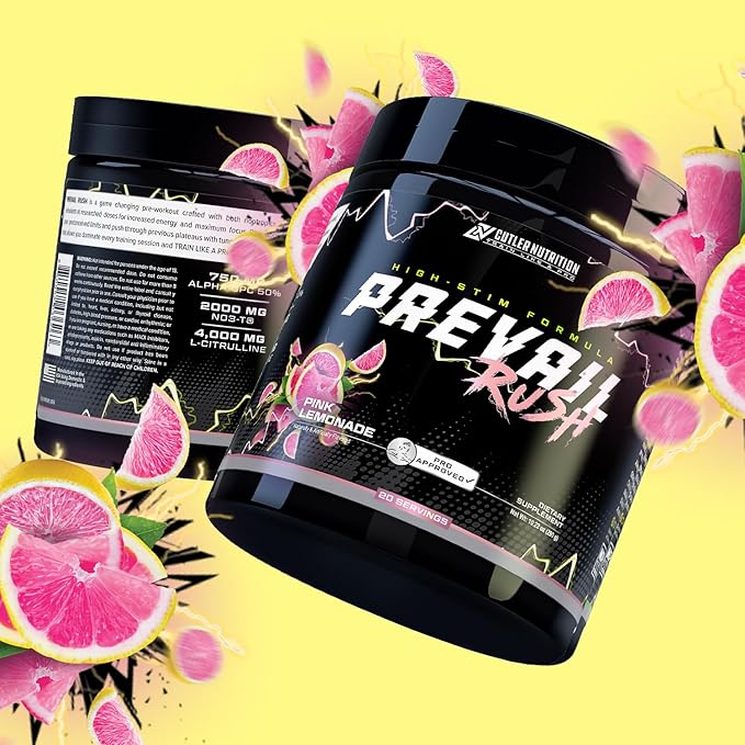 Cutler Nutrition High Stim Pre Workout Powder Prevail Rush Preworkout for Men & Women for Intense Pumps Energy and Focus with Caffeine NO3T Betaine and Dynamine | Pink Lemonade (20 Servings)