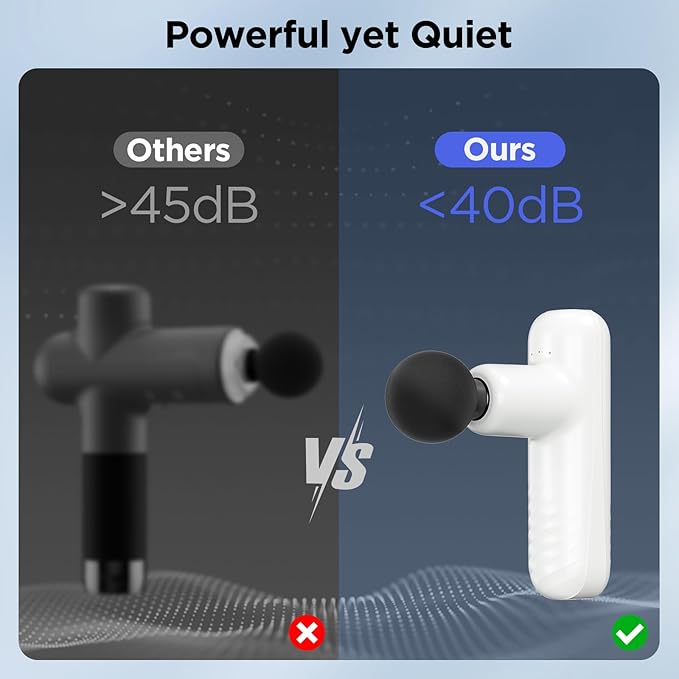 - User-Friendly Design and Long-lasting Performance: Designed for ease of use, Penjoy mini massage gun features a lightweight and durable body with a T-grip for easy access to the lower back, ensuring instant relief from back pain. With low noise levels ranging from 35dB to 40dB, it's suitable for use in any environment without causing disturbance. Additionally, the 10-minute auto-off feature enhances safety, while the long-lasting battery ensures extended use, making it the perfect travel companion for muscle relaxation anytime, anywhere.