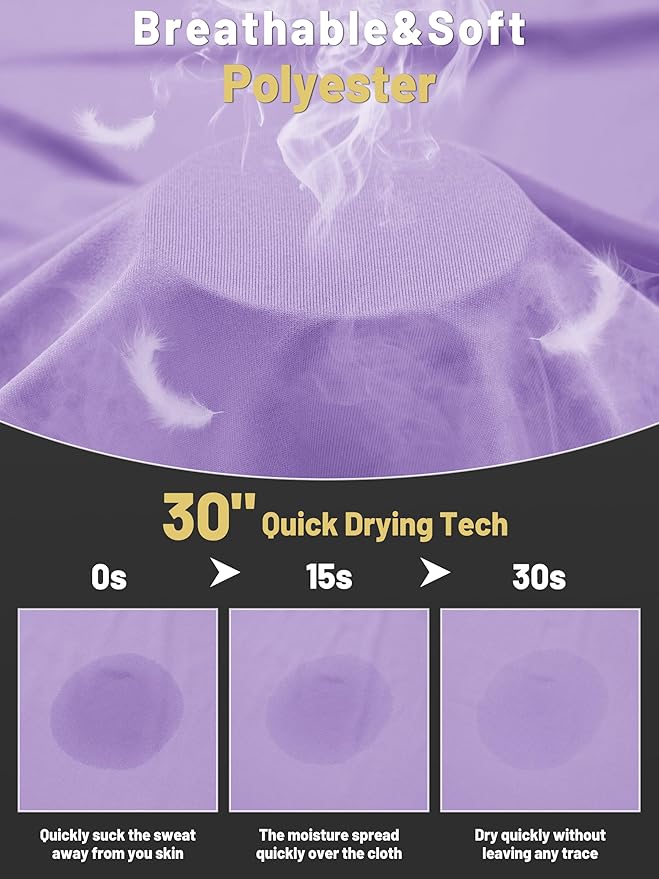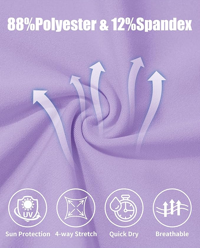 - Material: 88%Polyester,12%Spandex. Quick Dry, Breathable, Moisture Wicking, Lightweight.