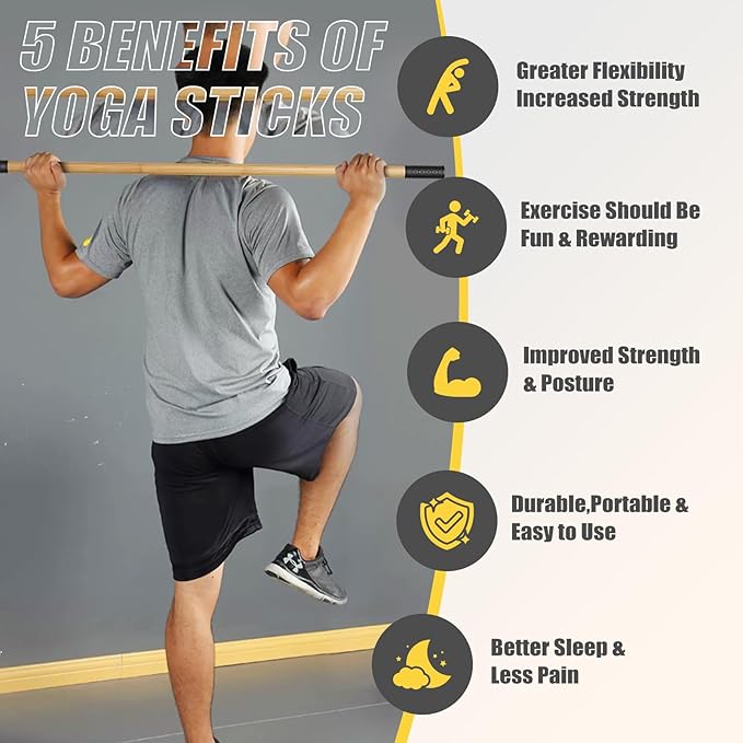 - Improve Thoracic Spine Flexibility & Balance - our brand gym stick can release stiff back, alleviate body pain, and improve physical health. Help you adjust your posture, improve breathing, stretching, and flexibility. Yoga sticks are also effective in learning yoga