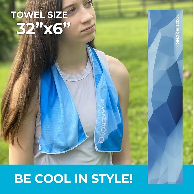 - ๐ช VERSATILE DESIGN: The SHAKEitCOOL towel adapts to your needsโwrap it around your neck, drape it over your head, or place it on your forehead for targeted cooling relief during any indoor or outdoor activity.